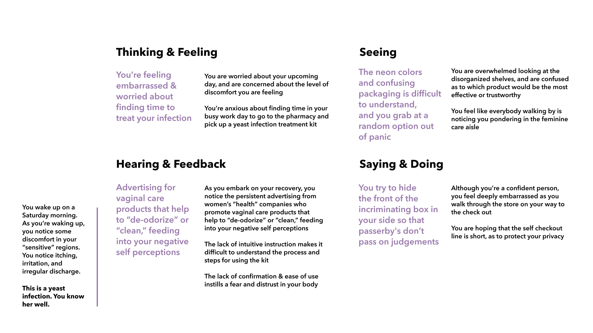 Rethinking the treatment experience for yeast infections with dignity and discretion at the forefront of design.